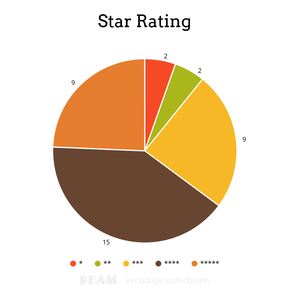 Next up is star rating. What strikes me right off the bat is the low amount of one- and two-star books; when you do the math, my average star rating is 3.7. I don’t think this is because of inflation on my part, but really just picking good books. Yes, I read with a very critical eye, but honestly, most of what I read this year was decent to excellent. (Though those occasionally terrible reads really stick in your head, let me tell ya.) For this category, I don’t see much point in wanting there to be a spread; here’s hoping the whole chart is five star books next year.