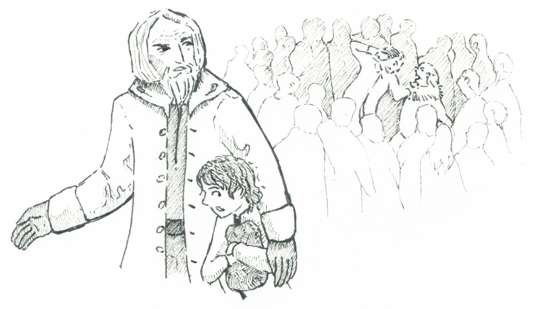 Thurie’s mother didn’t wait for him keep talking. She made a dive toward the kitchen knives, but the hooded man, nimble on his feet, blocked her way and aimed a punch at her stomach. She fell to the ground, gasping for breath. Thurie screamed and ran for the hooded man, who loosed another laugh as one of his companions plucked Thurie off the ground mid-stride, arms still swinging.